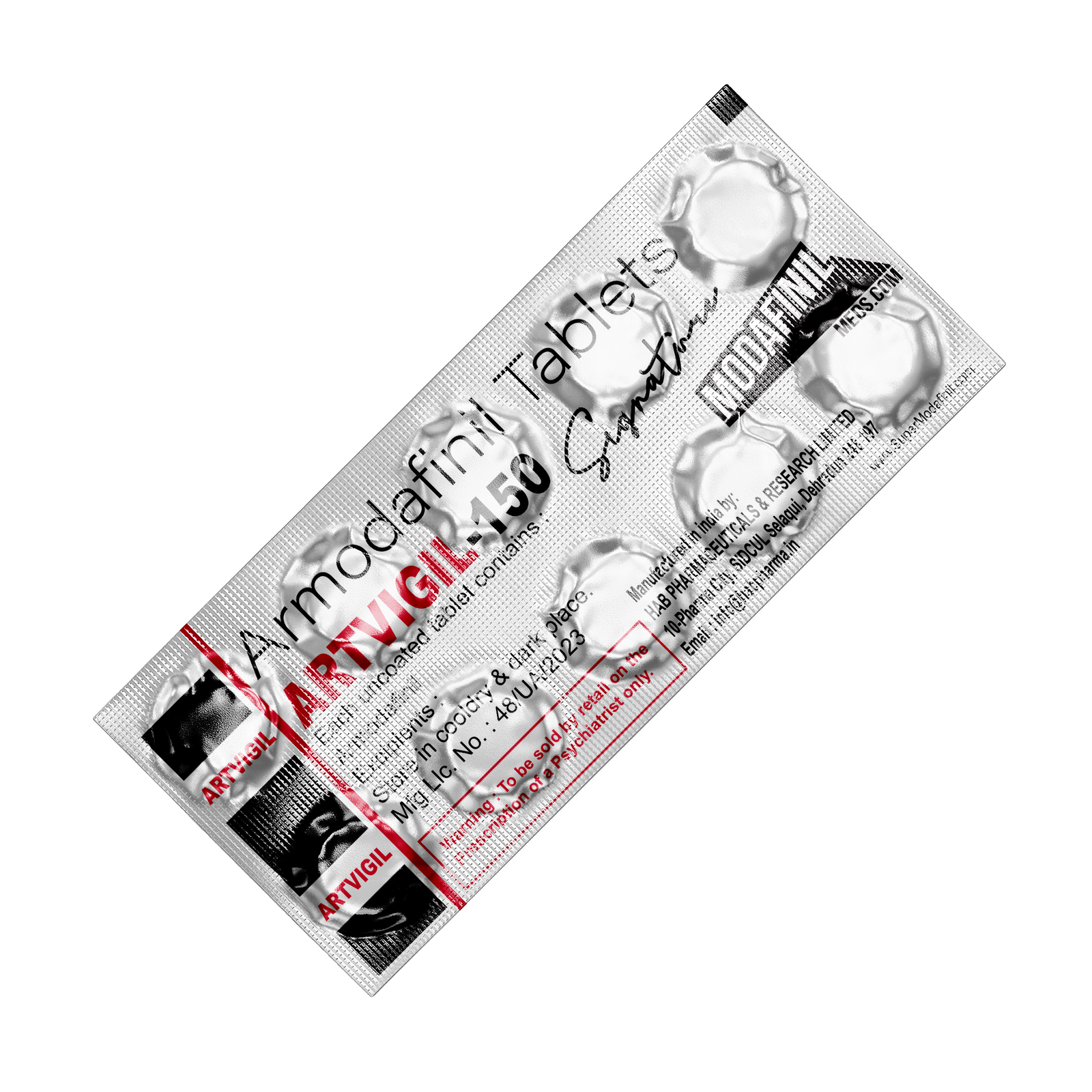 While all of the products available from our store including Artvigil 150 are officially approved for safety, they still need to be handled according to the principles of good laboratory practice. Chemicals should be stored in a dark, dry, and well-ventilated room and kept in original packaging until they are used for research purposes. Any accidental contact with living tissues should be avoided and immediate medical attention should be sought in case the tablets are inadvertently ingested.